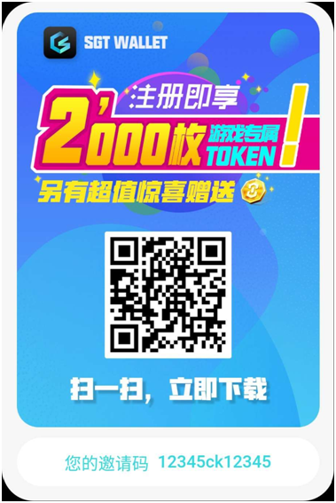 千腾科技旗下SGT钱包正式开放注册,为了加大千腾区块链游戏生态发展,特别拿出2000万枚游戏专属通证,鼓励社区成员分享注册SGT钱包赠送活动。